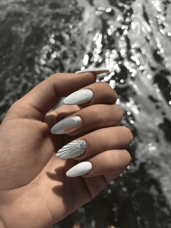 Channel the magic of summer with a mesmerizing white nail design! This isn’t your average manicure – it’s about incorporating elements that evoke wonder and intrigue. Think starry night skies with delicate constellations hand-painted in silver or gold. For a more whimsical touch, create fluffy white clouds accented by tiny rainbows or shimmering glitter accents. Feeling bold? Go for a mesmerizing chrome effect with a white base that shifts and reflects light, creating an almost pearlescent, magical sheen. No matter your style, there’s a white nail magic design waiting to unleash your creativity and turn your fingertips into tiny works of summer enchantment.