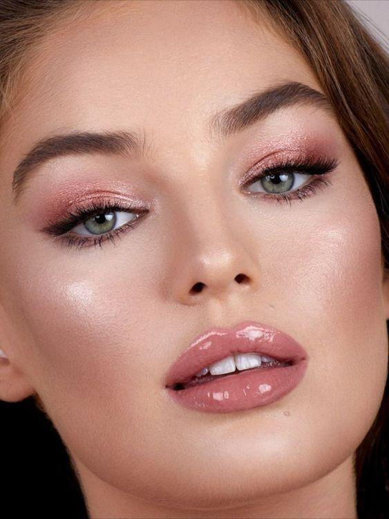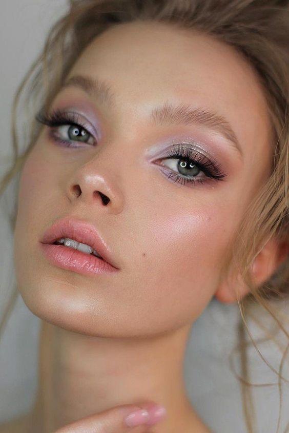 There’s one color you’ll reach for repeatedly for coquette makeup: pink. This includes saturated flushed cheeks in a strawberry or rosy hue, soft pink lips, and even pink eyeshadow. Riddle says, “I love to sweep in the blush over the eyelids and brow bone to really complete this look.”