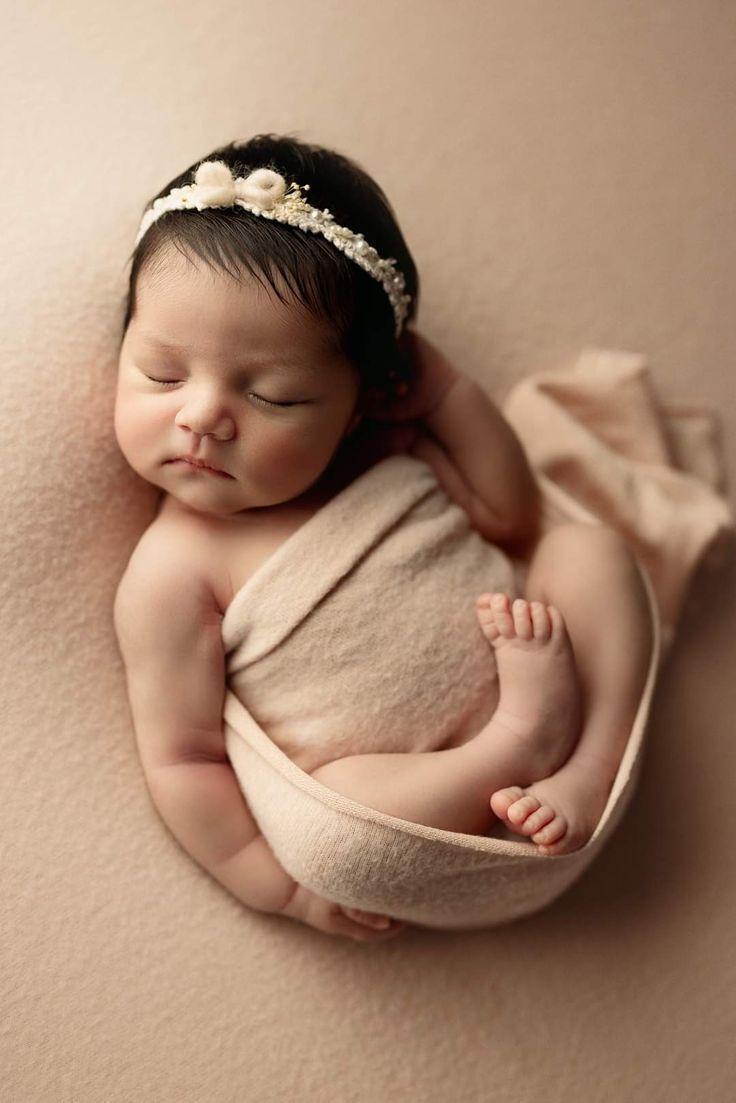 Select the Right Props: Choose soft, textured props in neutral colors to highlight your baby. Lightweight wraps or swaddles add comfort and texture.