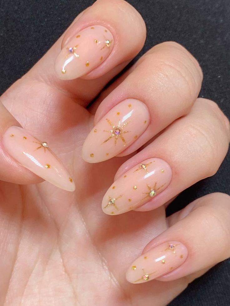 Incorporating a touch of glitter into your graduation look ensures a festive yet classy appearance. The best part is that you can add glitter to any nail color you choose. One of the most stunning designs we’ve come across features nude nails accented with gold glitter at the base, creating a beautiful and sophisticated effect.