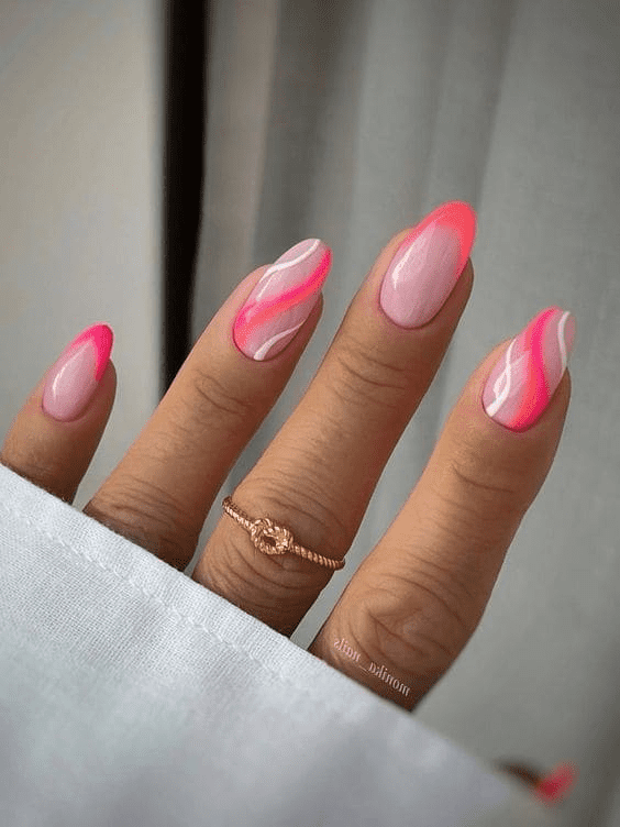 Why not embark on a whimsical journey with swirls and French tips? Imagine the magic of swirl-accented pink French tips gracefully adorning your fingertips. The playful swirls create an enchanting allure, adding wonder and delight to your manicure. Let your nails become a canvas for whimsical expressions.