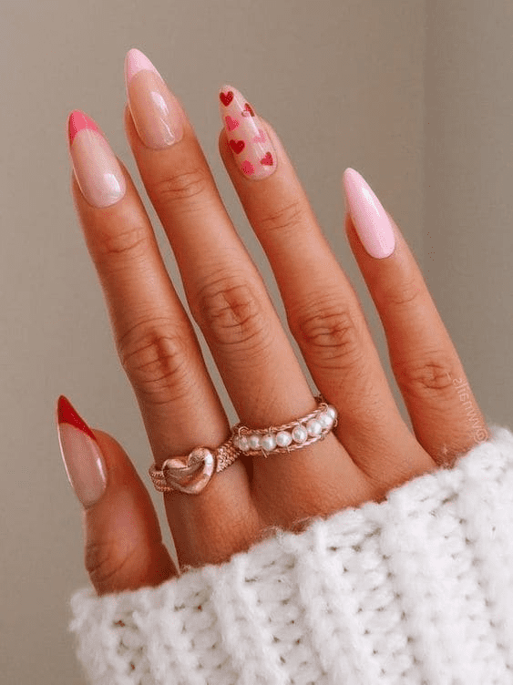 Why settle for one shade of pink when you can have two? A two-tone nail design blends harmonious hues for a doubly delightful effect. It’s the perfect choice for those who love their nails to be sweet, chic, and utterly captivating.