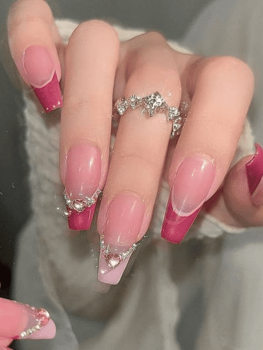Experiment with different shapes to find the one that enhances your pink French tips and complements your unique style.