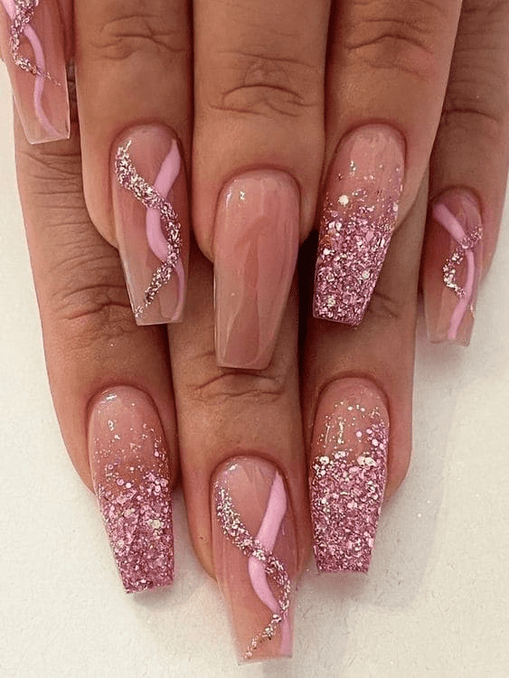 Candy-inspired nails always grab our attention, and this swirl pattern with a pop of sweet color is reminiscent of a lollipop. For an extra-glossy finish, apply a shiny top coat to enhance the look of these playful designs.