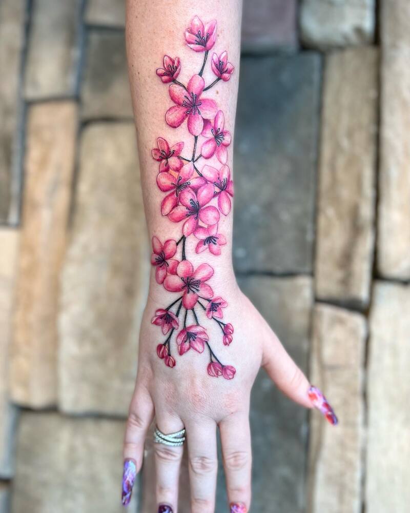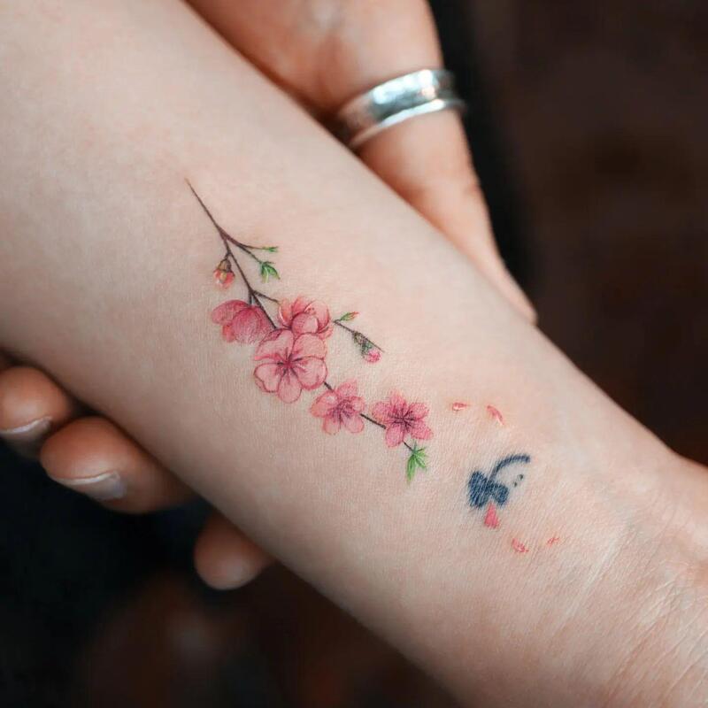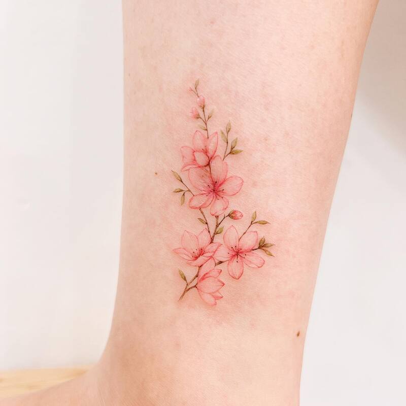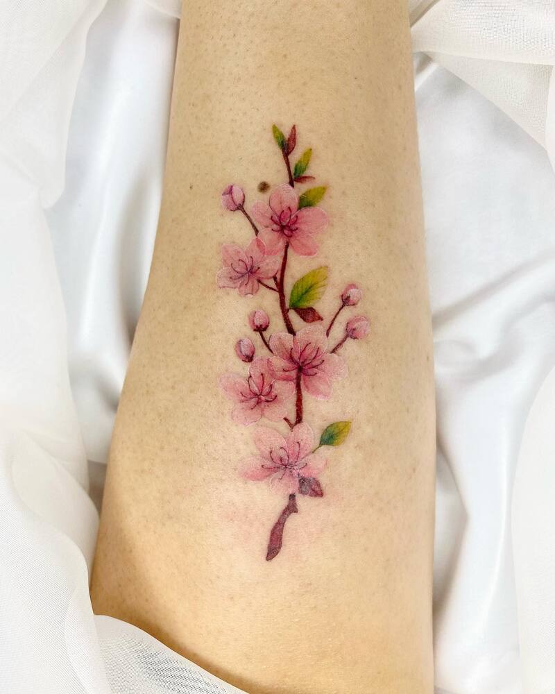 A subtle pink cherry blossom tattoo is a lovely way to express your appreciation for the spring season. If you embrace the idea of life’s renewal, this design beautifully reflects that spiritual concept.