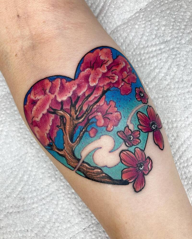 A heart-shaped cherry blossom tattoo can be a beautiful and personal tribute to someone you cherish. The combination of delicate blossoms and a heartfelt symbol creates a unique and meaningful design