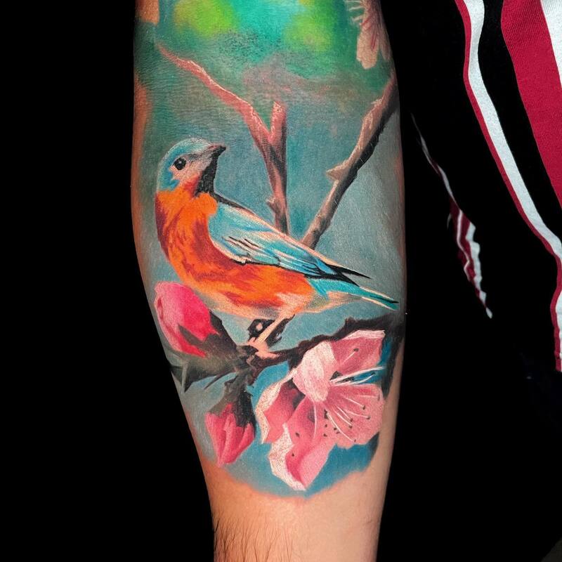 For those who enjoy a vibrant touch in their tattoos, artsy and colorful cherry blossoms are a perfect choice. This charming design is a great way to express your anticipation for spring and add a playful pop of color to your style.