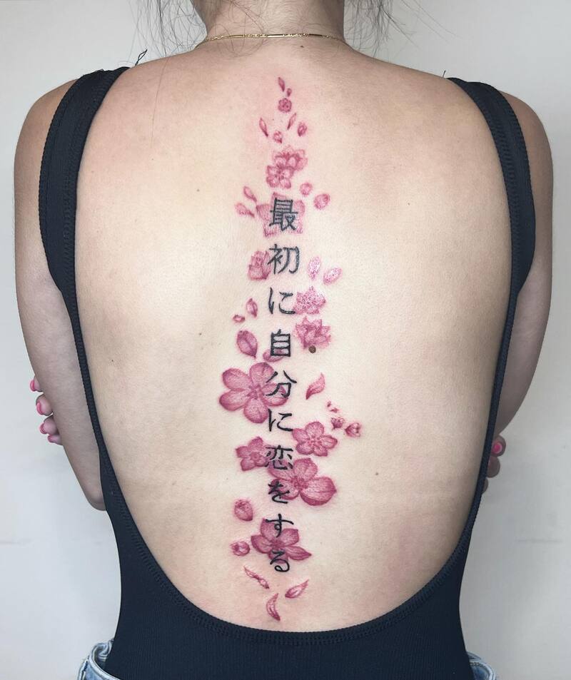 CHERRY BLOSSOM SPINE TATTOO