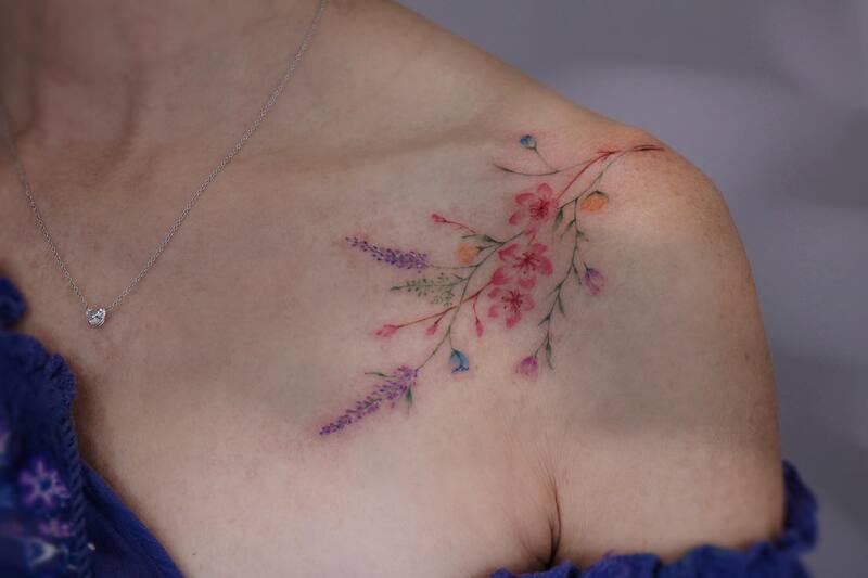 COLLARBONE CHERRY BLOSSOM TATTOO