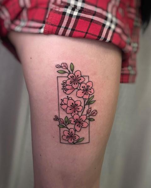 If you’re considering a large cherry blossom tattoo, the thigh is a perfect canvas. It can feature a detailed design with just a few branches or an entire tree. A watercolor cherry blossom tattoo also works beautifully for thigh placement, adding a vibrant touch to your body art.