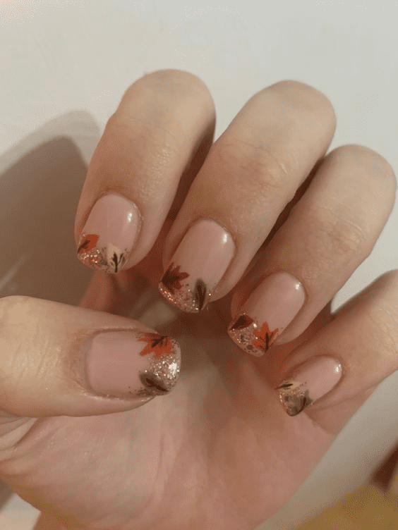 This design captures the essence of a crisp fall day, transforming your fingertips into a miniature masterpiece. Imagine a base coat in a rich, creamy coffee shade that provides a warm backdrop for the artistry. Delicate maple leaves are then hand-painted in a stunning array of fall colors – think fiery oranges, deep burgundy reds, and pops of sunshine yellow. To add a touch of sophistication, the leaves can be outlined with a thin line of gold glitter. This design is perfect for the fall birthday queen who wants her nails to reflect the beauty of the season. It’s both elegant and eye-catching, making a lasting impression for your special day.