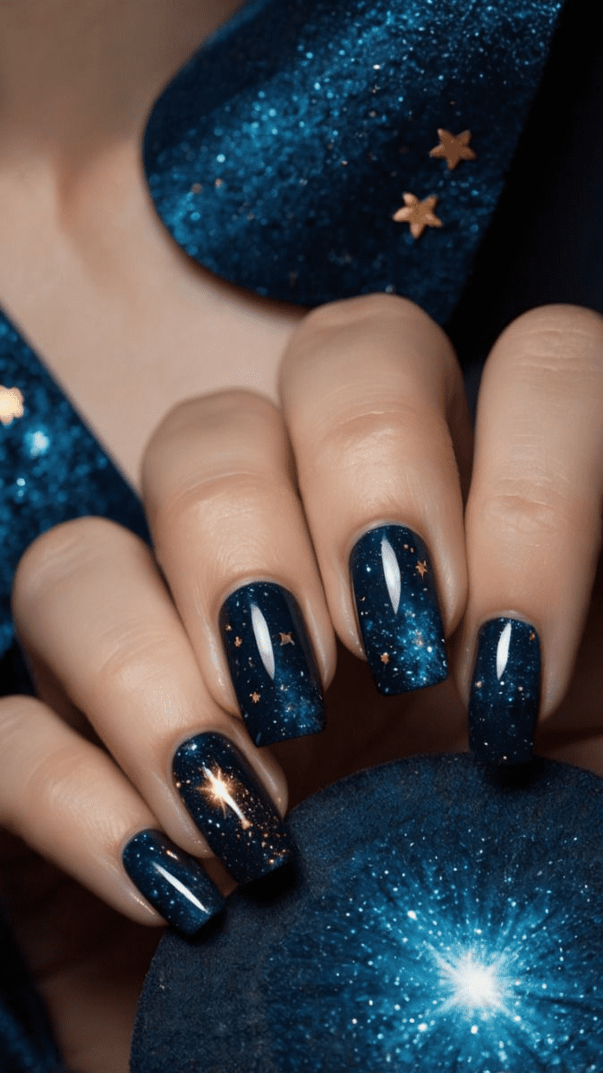 Ditch the basic French manicure! This birthday look takes it up a notch with a soft pink base that beautifully complements the chic metallic blue tips. For some extra sparkle, tiny rhinestones are sprinkled across the nails, adding a touch of glamour that’s perfect for your special day. It’s the perfect balance of elegance and birthday fun, making this mani an unforgettable accessory for your chic birthday celebration.