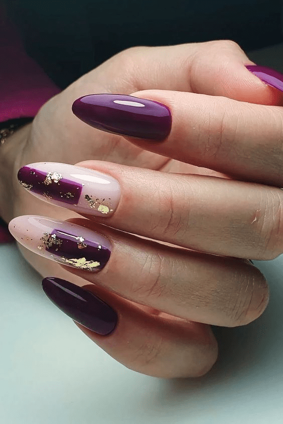 Ditch the boring pinks! This birthday mani takes it up a notch with a base of soft pink that’s anything but basic. Rich burgundy accents add a pop of sophistication, and tiny gold leaf details give the whole design a touch of playful luxury. It’s the perfect balance of elegance and fun, making these nails a chic accessory for your birthday celebration.