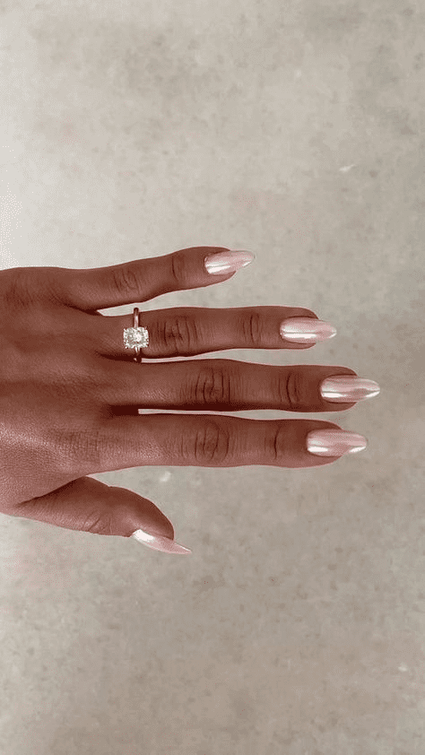 Metallic Whispers Nail is a captivating nail design that exudes subtle elegance and modern sophistication. This look features a delicate blend of shimmering metallic shades, such as silver, gold, and rose gold, creating a soft, whisper-like effect on your nails. The reflective finish adds a touch of glamour without being overly bold, making it perfect for both everyday wear and special occasions. The versatility of Metallic Whispers Nail allows it to complement various outfits and styles, from casual chic to formal attire. This design is ideal for anyone looking to add a hint of refined sparkle to their manicure, effortlessly merging understated luxury with contemporary edge.