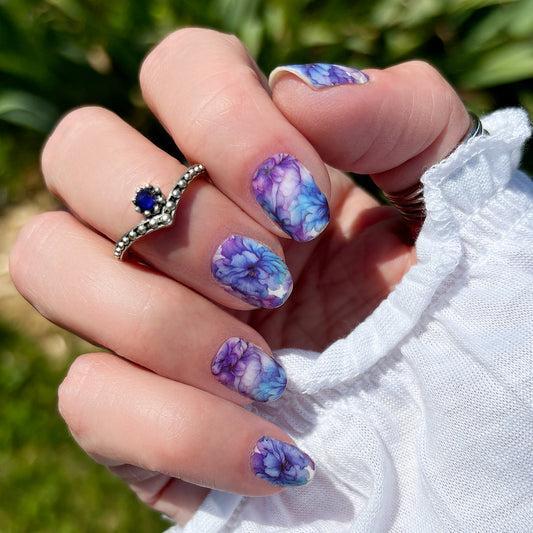 “Pink Blue Bliss” is the epitome of a calming and cheerful birthday mani. Imagine a base coat of a soft, baby blue that instantly evokes feelings of serenity and peace. This cool hue beautifully complements the delicate floral decals or hand-painted designs in shades of baby pink. Play around with different flower shapes and sizes, or even create a whimsical scattered effect. A touch of shimmer, either on the pink flowers or as a subtle top coat, adds a touch of birthday flair without overwhelming the serene aesthetic. This design is perfect for the birthday girl who wants a manicure that’s both pretty and relaxing, celebrating your special day with a touch of tranquil charm.
