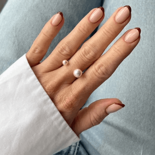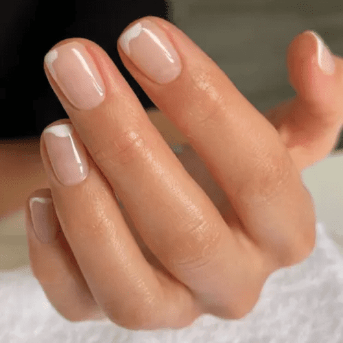 A round French nail design offers a modern and softened take on the classic French manicure. The rounded tip creates a feminine and gentle look, perfect for those who prefer a more understated style. While it maintains the professional elegance of the traditional French, the round shape adds a touch of contemporary flair, making it a suitable option for most workplace environments.