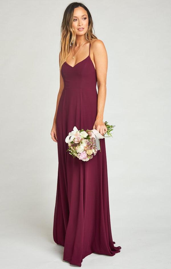 LONG CREPE WINE BRIDESMAID DRESS