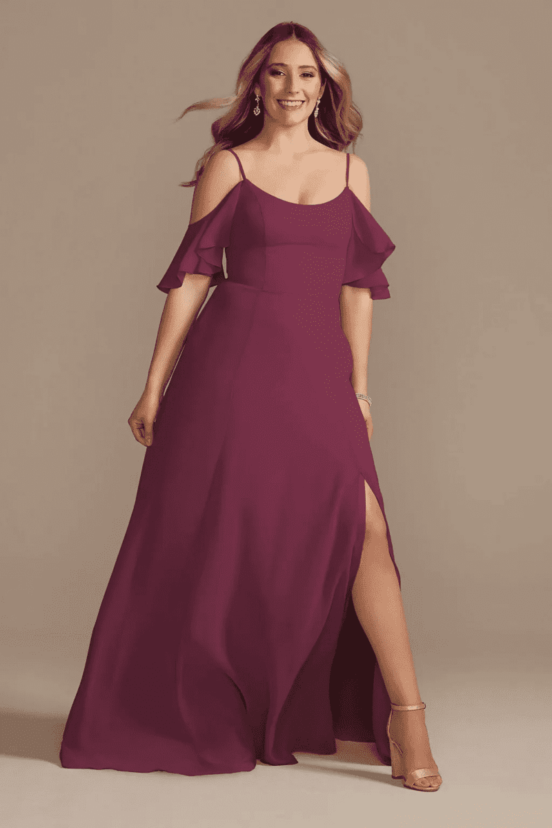 COLD-SHOULDER LONG CHIFFON BRIDESMAID DRESS