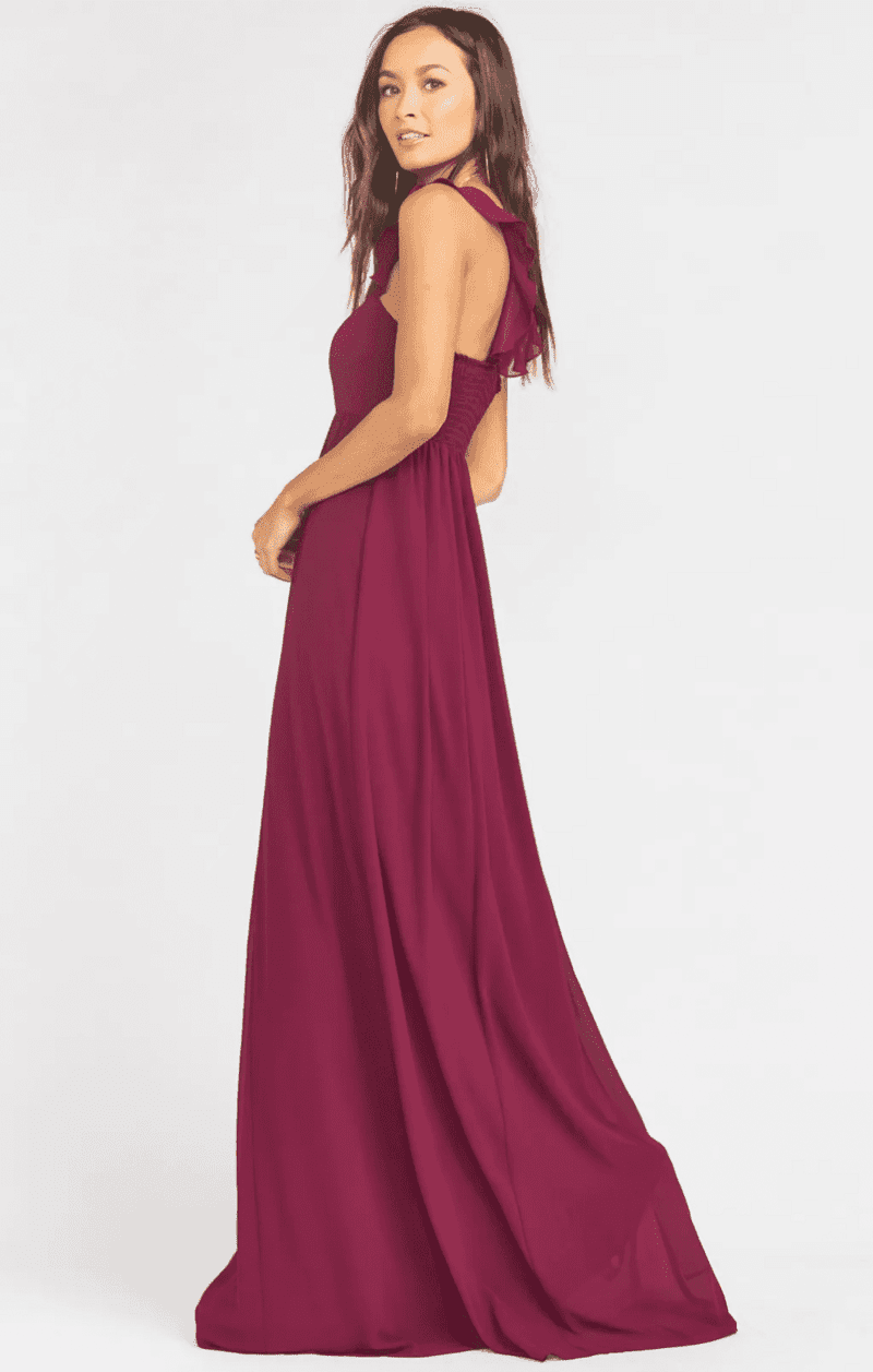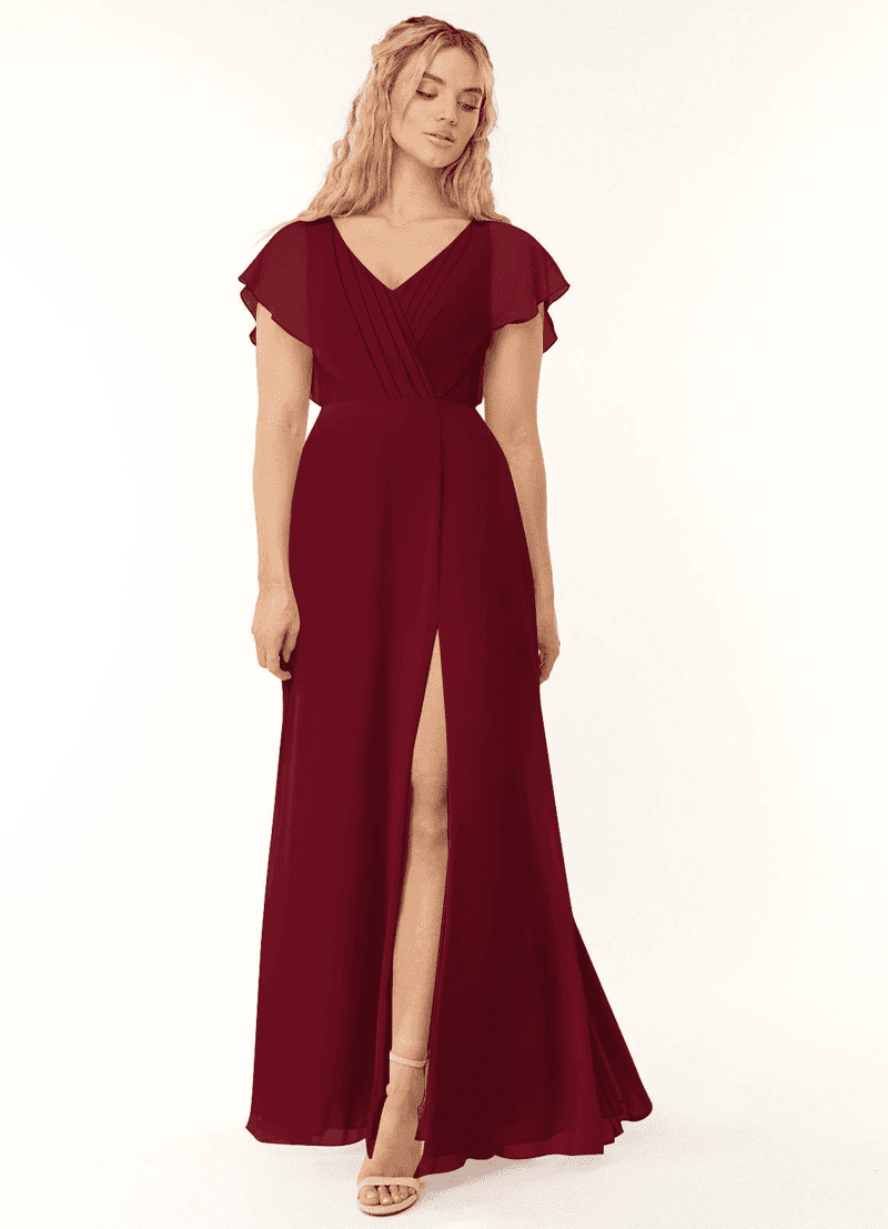 FLUTTER SLEEVE + CUTOUT MAROON BRIDESMAID DRESS