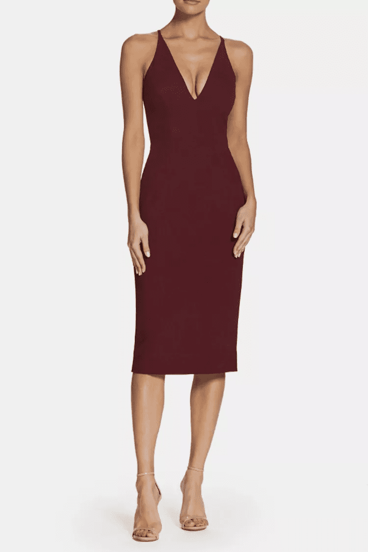 DRESS THE POPULATION LYLA PLUNGING MIDI SHEATH DRESS