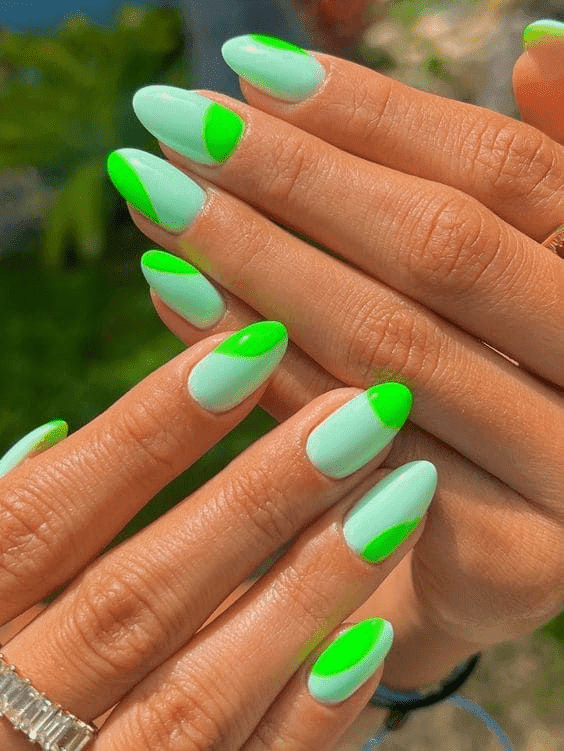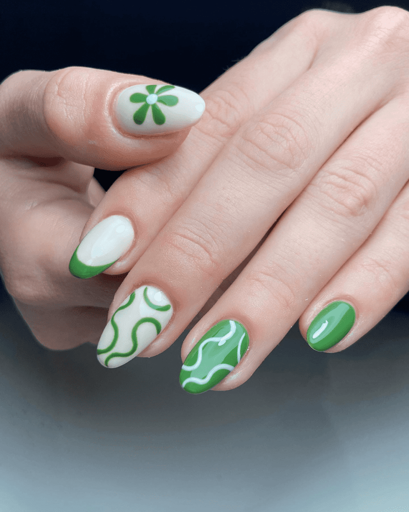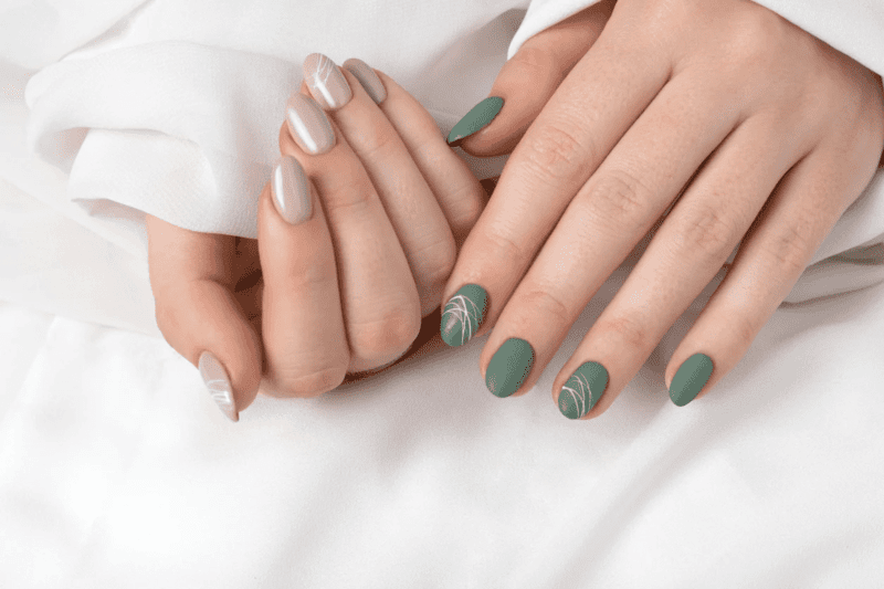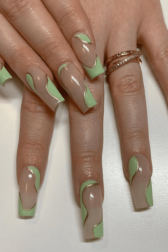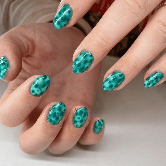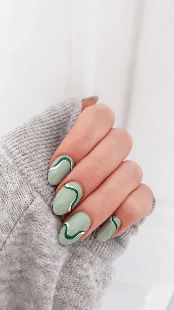 This captivating design uses various shades of green to create hypnotic swirls and patterns on your fingertips. It’s perfect for anyone who wants a manicure that’s both eye-catching and artistic.