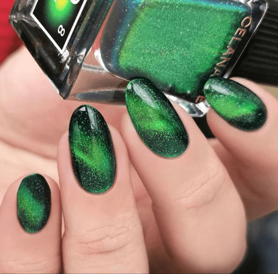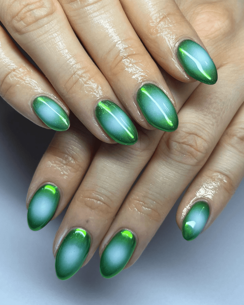 TRIPPY MAGNETIC GREEN NAIL DESIGN