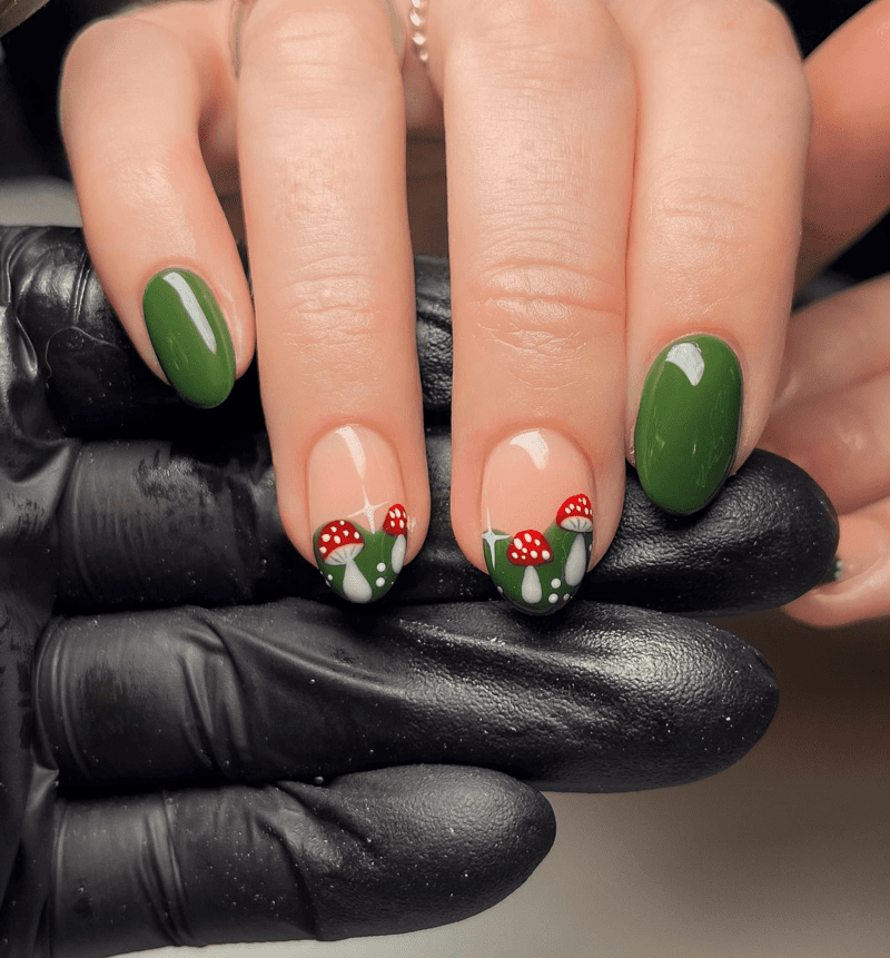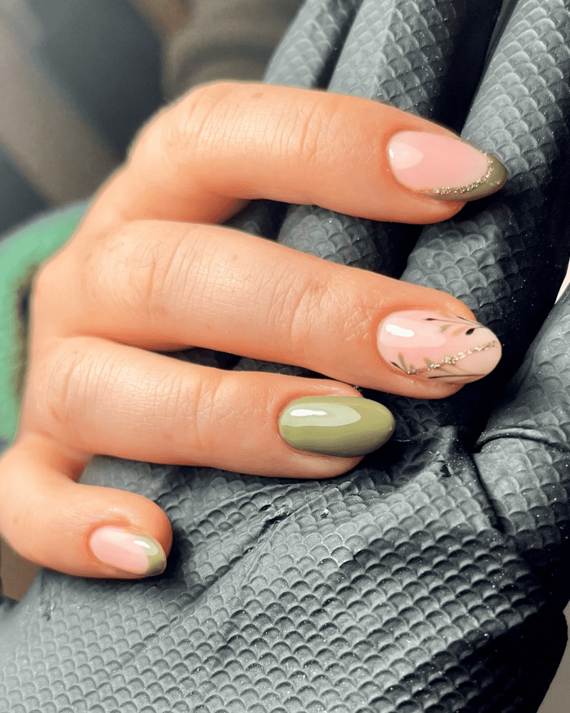 MATTE GREEN AND NUDE NAIL IDEA