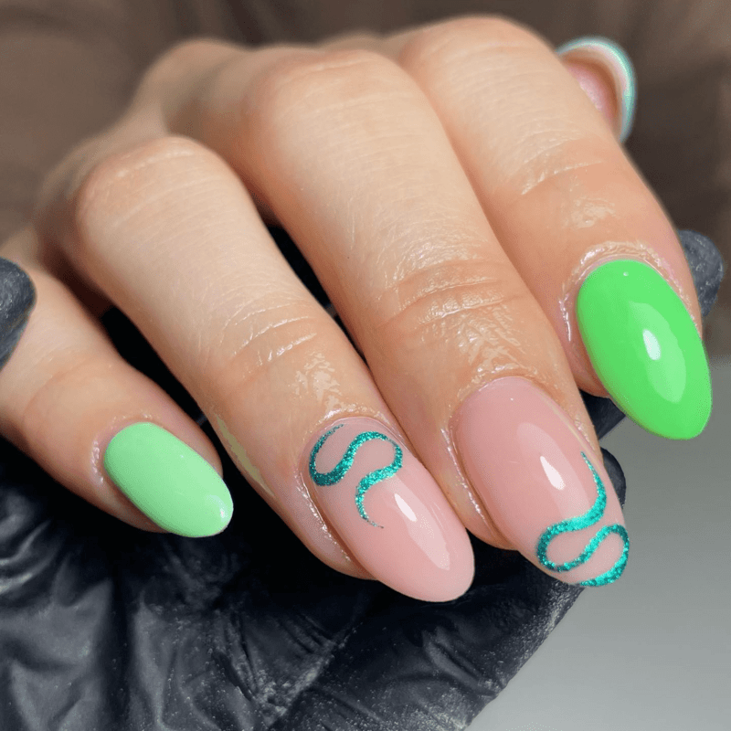 Here’s the beauty: there are no set rules! Paint each nail a different shade of green, from soft mint to deep forest. Incorporate fun nail art elements like polka dots, stripes, or even tiny candy decals. Feeling extra playful? Add a touch of glitter or metallic accents for some extra sparkle. The key is to have fun and create a design that reflects your unique style. With pick n mix vibes, your nails become a delightful canvas for endless summer manis!