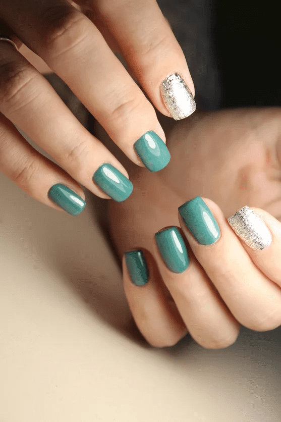 GREEN NAILS WITH ACCENT SILVER NAIL DESIGN