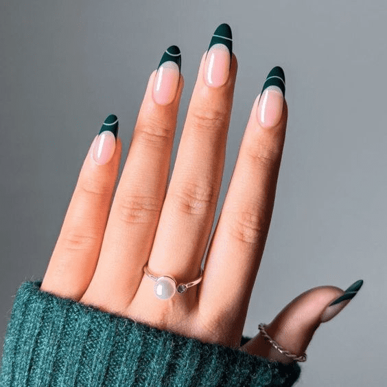 GREEN FRENCH NAIL DESIGN