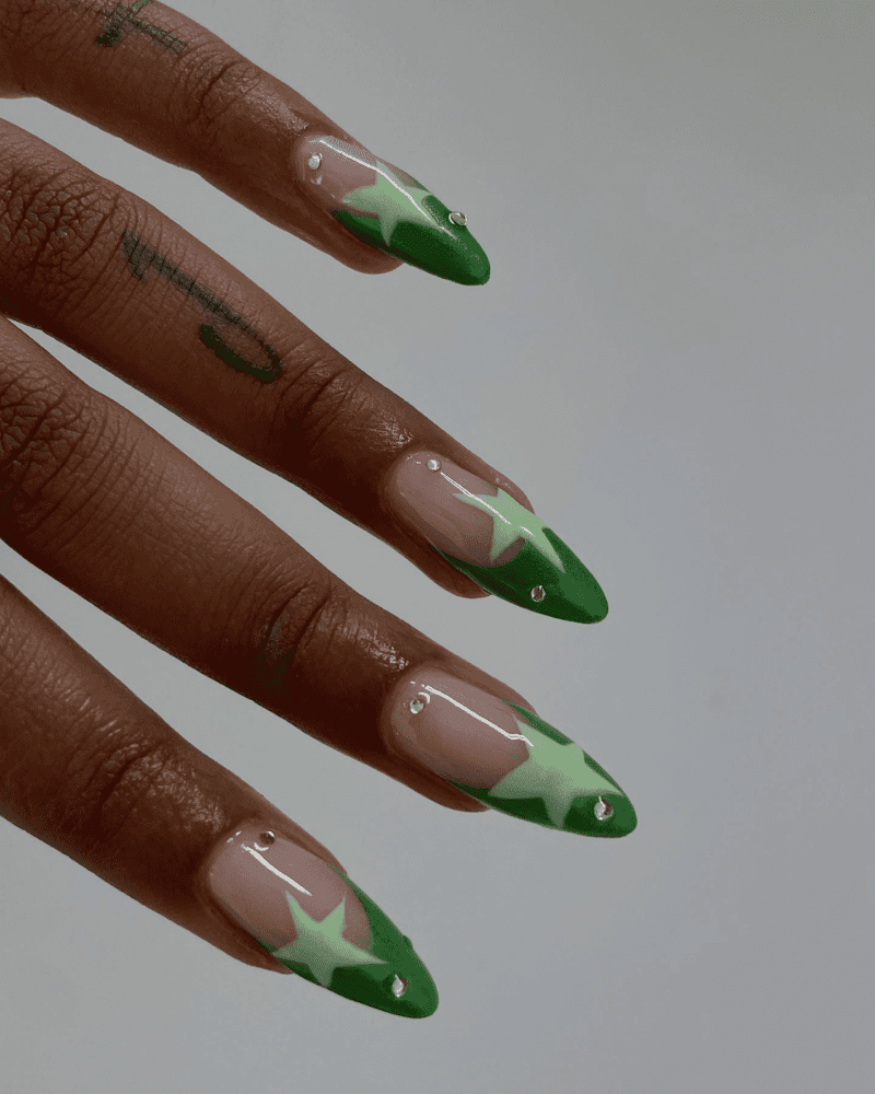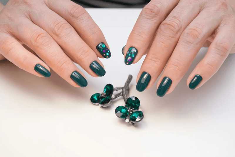 GREEN BEJEWELED NAIL DESIGN