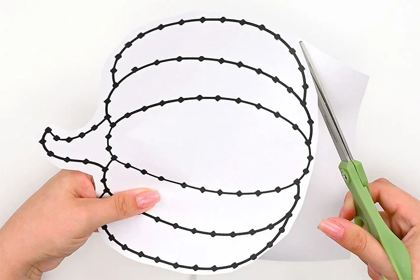 Print the free pumpkin string art template, then cut around the shape, leaving a small border outside the outline.