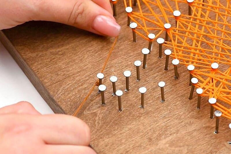 Weave the string back and forth across the stem, wrapping it around the nails several times. Once you’re satisfied with the appearance of the stem, cut the string and tie it off securely.
