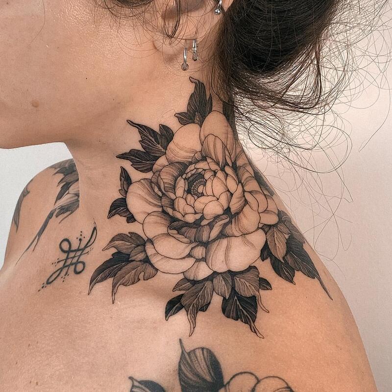 VIRGO TATTOO WITH A SLEEK MERCURY GLYPH NECK