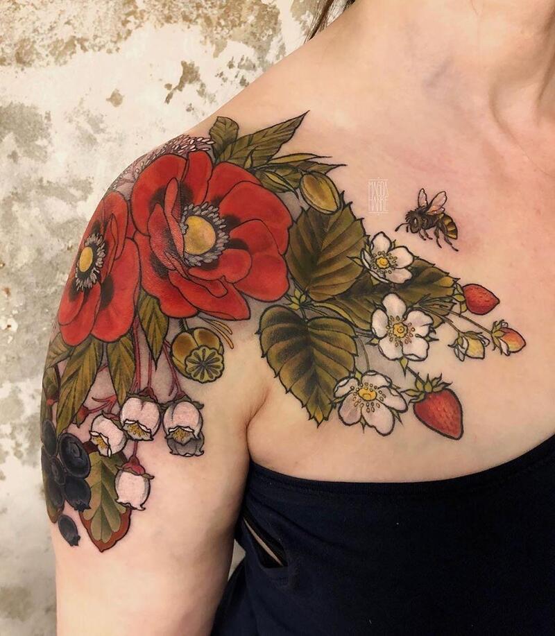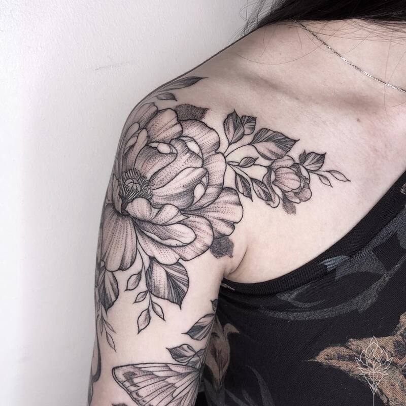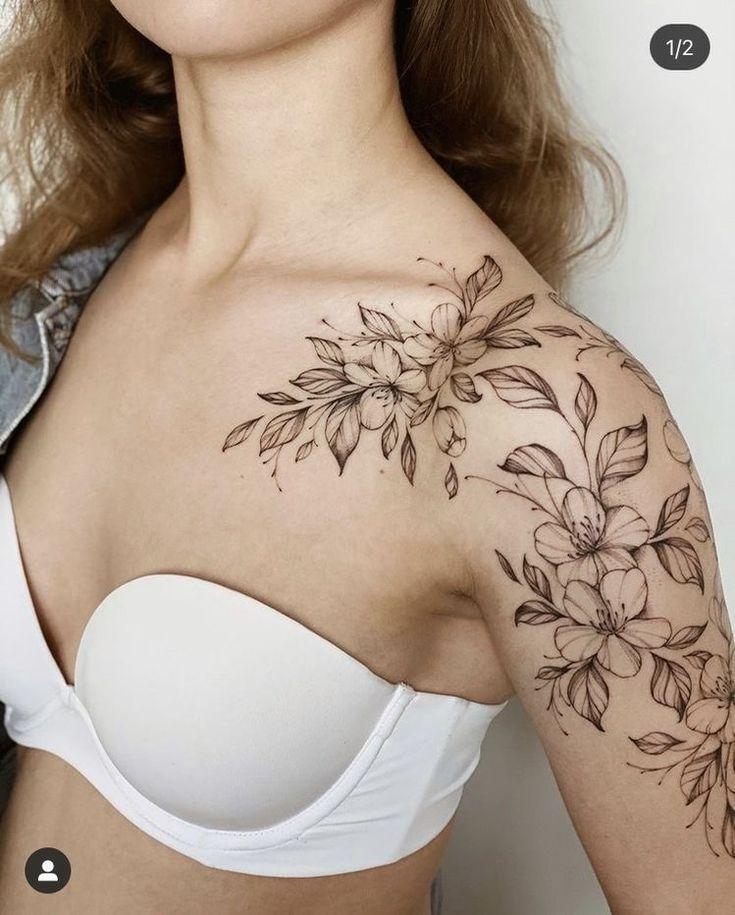VIRGO TATTOO WITH A FLOWER SLEEVE
