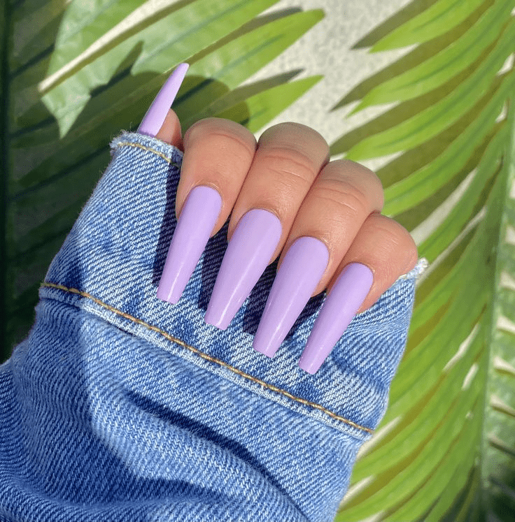 In this special design, applying a matte coat not only enhances the allure of the purple color but also creates a soft and seamless shimmer effect for the acrylic extension. The result is a set of nails with an elegant and appealing appearance, where the combination of color and details forms a unique and captivating masterpiece.