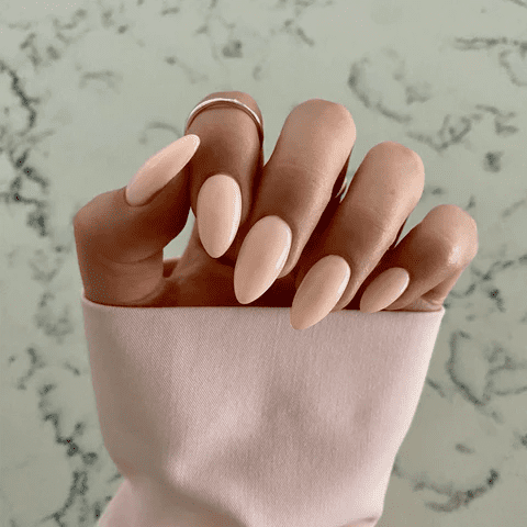 These nails appear almost nude, but upon closer inspection, a subtle hint of sparkle emerges. The peach shade not only works wonders in concealing imperfections but also achieves a natural look that is both soft and sophisticated. The incorporation of a delicate sparkle adds a touch of glamour, turning a seemingly understated style into a nuanced and elegant nail design.
