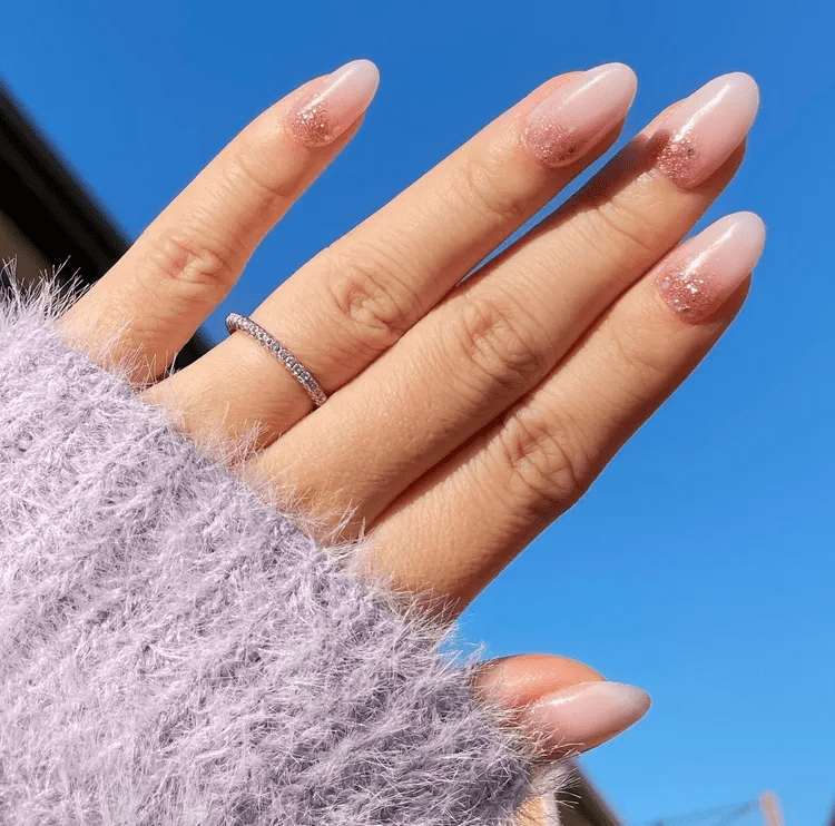 A dip powder shade with a subtle shimmer will impart a chic and understated elegance to your nails. Additionally, this choice adds a touch of sophistication and allure to your overall manicure.