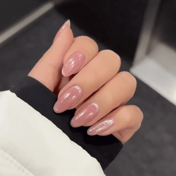 Paint your nails (optional): If you’d like a more opaque pink base for the chrome to show on, apply a thin layer of light pink nail polish. Two thin coats are better than one thick coat to avoid smudging and ensure faster drying. Let each coat dry completely before applying the next. (You can skip this step if you prefer a more sheer chrome effect.)