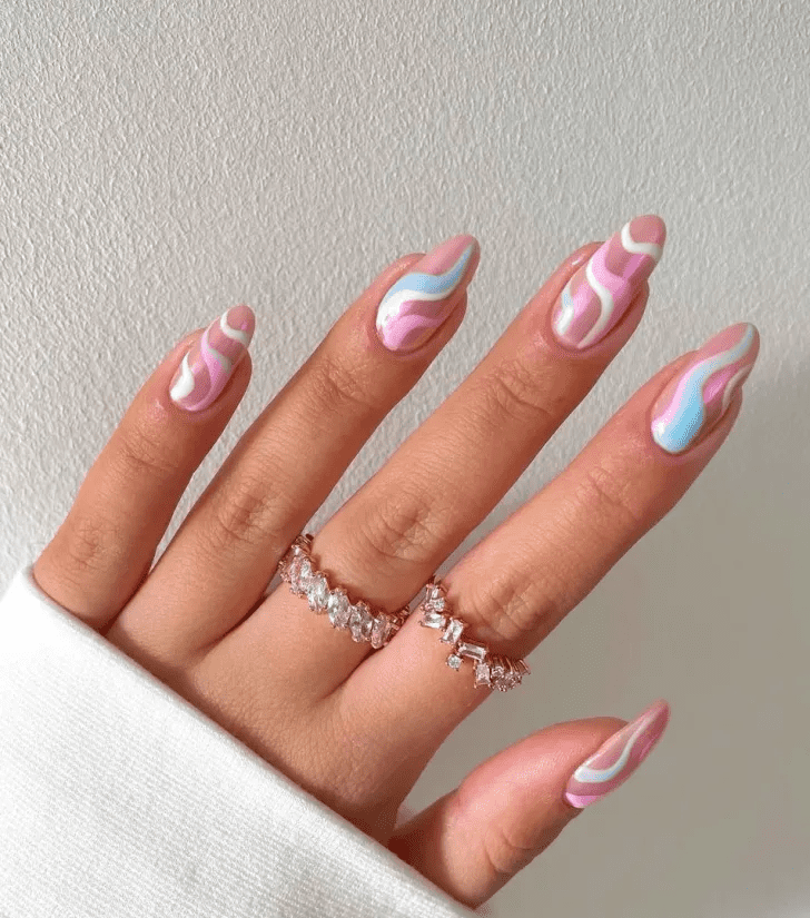 Achieve a nautical-inspired nail look by blending various shades of blue, teal, yellow, and green. This playful combination allows you to express your individual style and adds a touch of seaside charm to your manicure.