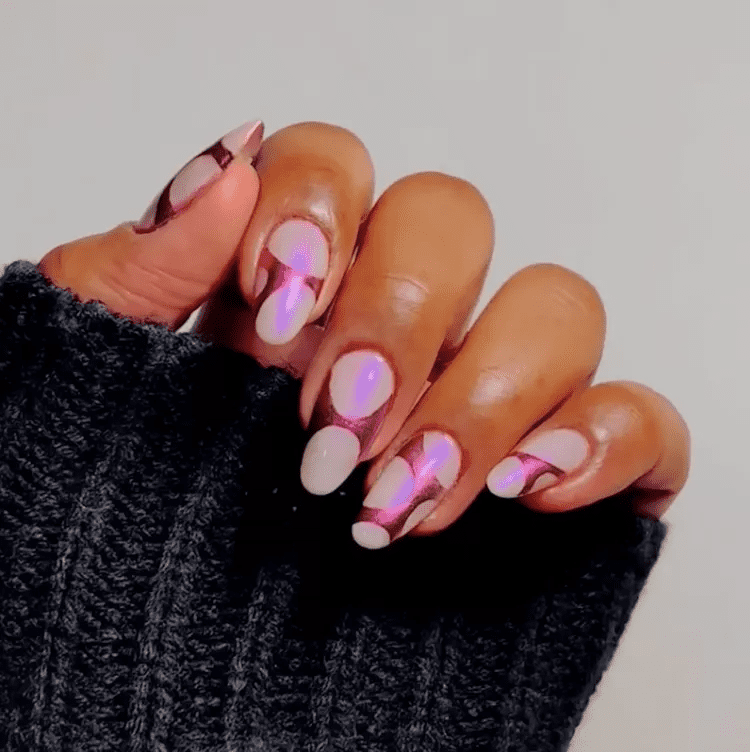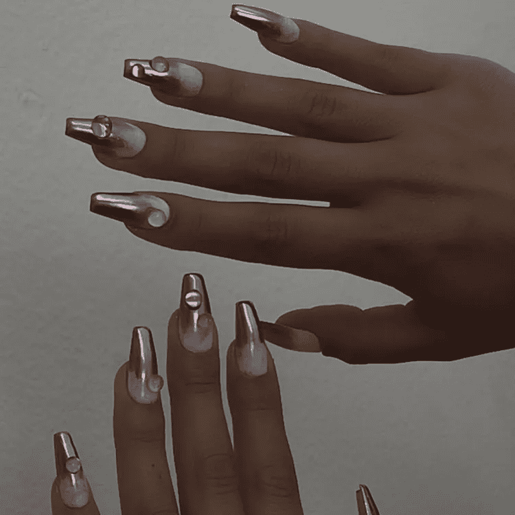 This trend transcends the classic pink chrome, offering a touch of warmth with its subtle rosy undertones. Imagine a mesmerizing blend of pink and gold, shimmering with a high-shine finish that catches the light with every move. Rose chrome nails are perfect for those who desire a sophisticated yet alluring manicure. The subtle rose hue adds a touch of femininity, while the chrome finish exudes confidence and modern flair. Whether you prefer a classic full chrome application or a more intricate design, rose chrome nails are guaranteed to turn heads and elevate your entire look.