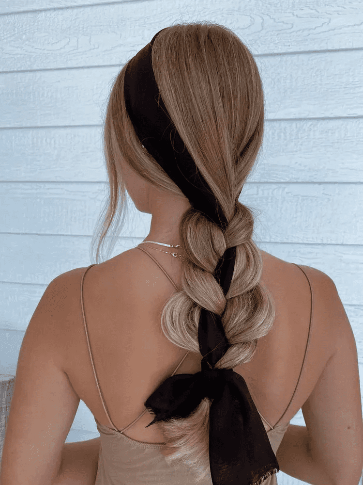 - Combine Braids: Join the two braids together and tie them in a low ponytail.