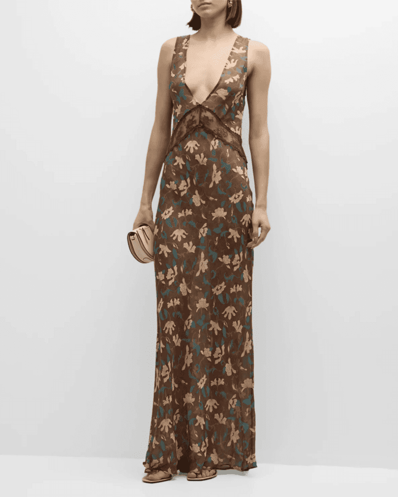 SHEER MAXI WITH FITTED BODICE IN NIGHT GARDEN