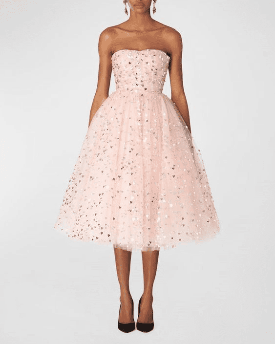 Turn heads and command the spotlight with Carolina Herrera’s sequin corset dress. This show-stopping piece is designed to make you the star of the night. Imagine a cascade of shimmering sequins adorning the entire dress, catching the light and creating a dazzling display. The all-over sequin embellishment isn’t just for sparkle – it adds a touch of glamour and luxury that’s perfect for a special occasion. But the true magic lies beneath the sequins. The dress features a structured corset top, cinching your waist and sculpting a stunning hourglass figure. This silhouette flatters your curves and exudes confidence, ensuring you feel glamorous and powerful throughout the night. Whether you’re attending a gala, a cocktail party, or a night out on the town, this Carolina Herrera sequin corset dress is guaranteed to make a lasting impression.