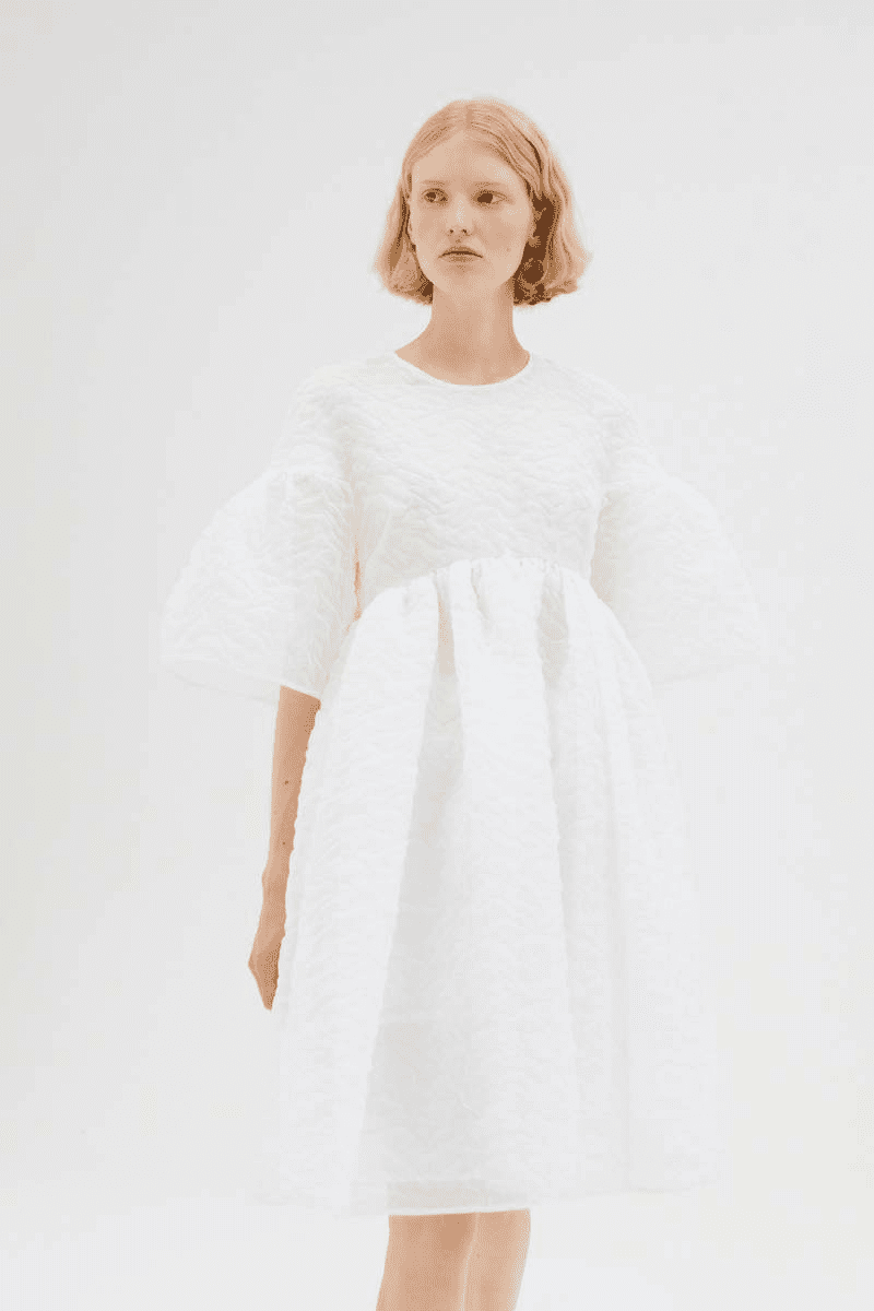 Step into a romantic dream with the Cecilie Bahnsen dress, a whimsical masterpiece that embodies femininity and grace. The dress features a puff-sleeved corset top, cinching your waist and creating a delicate hourglass silhouette. The voluminous skirt, a signature detail of Bahnsen’s designs, billows outwards in soft layers, adding a touch of drama and movement. Imagine the skirt swirling around you as you walk, creating a truly captivating presence. Complementing the silhouette is a delightful floral print, adding a touch of springtime charm and enhancing the overall romantic feel of the dress. This Cecilie Bahnsen creation is perfect for a special occasion where you want to feel both beautiful and whimsical, leaving a lasting impression of elegance and effortless charm.