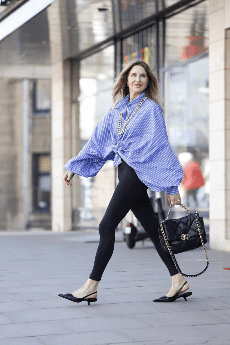 Forget the struggle of choosing between comfort and style. Trainers and leggings are the ultimate power couple in your closet. This dynamic duo is perfect for your most relaxed days, offering unbeatable comfort for running errands, hitting the gym, or simply lounging in style. The sporty edge of trainers adds a cool vibe to your leggings, while the breathable fabrics of both pieces keep you comfortable and moving freely. But don’t be fooled by their casual nature – trainers come in a vast range of styles, from sleek and minimal to chunky and bold. Whether you choose a timeless white trainer or a trendy platform sole, you can easily dress your leggings up or down. Throw on a denim jacket for a laid-back look, or elevate things with a blazer and statement earrings for a touch of athleisure chic. Leggings and trainers are a win-win for both comfort and style, offering endless outfit possibilities for any casual occasion.