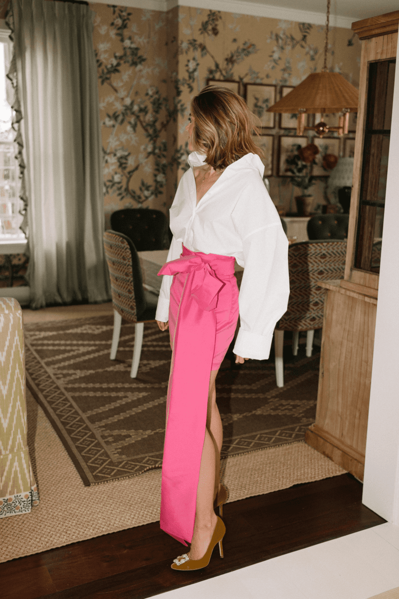 WHITE BLOUSE & PINK SKIRT