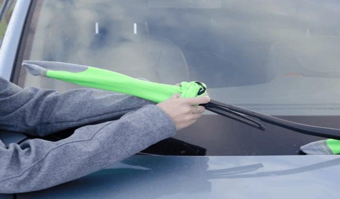 To prevent your windshield wipers from freezing, take a pair of long socks and slip them over the wipers while your car is parked. This simple trick helps keep the wipers warm and protected, preventing them from freezing during cold winter days and nights.
