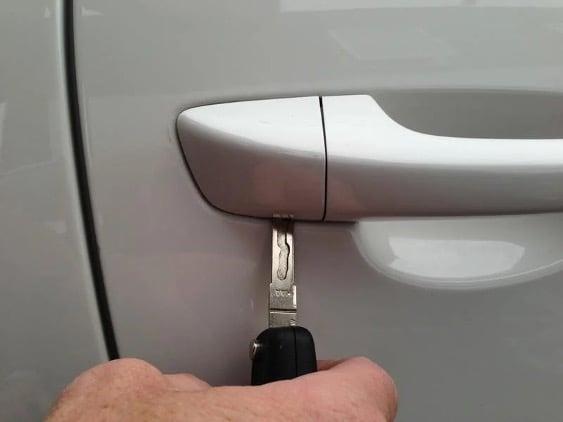 If your keyless entry system fails, check for a small plastic cover on the edge of the door handle. Underneath it, you’ll find a manual lock mechanism. Simply remove the cover to access the lock, allowing you to unlock your car’s doors and get inside, even without the keyless entry working.
