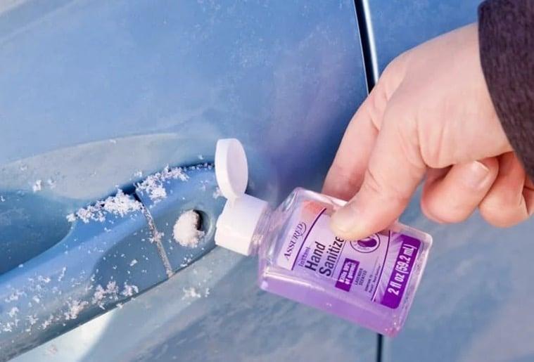 To quickly unfreeze door locks, simply apply a generous amount of hand sanitizer directly into the lock. The alcohol in the sanitizer lowers the freezing point of water, helping to melt the ice and free up the keyhole. It’s a quick and effective fix for those frosty mornings!